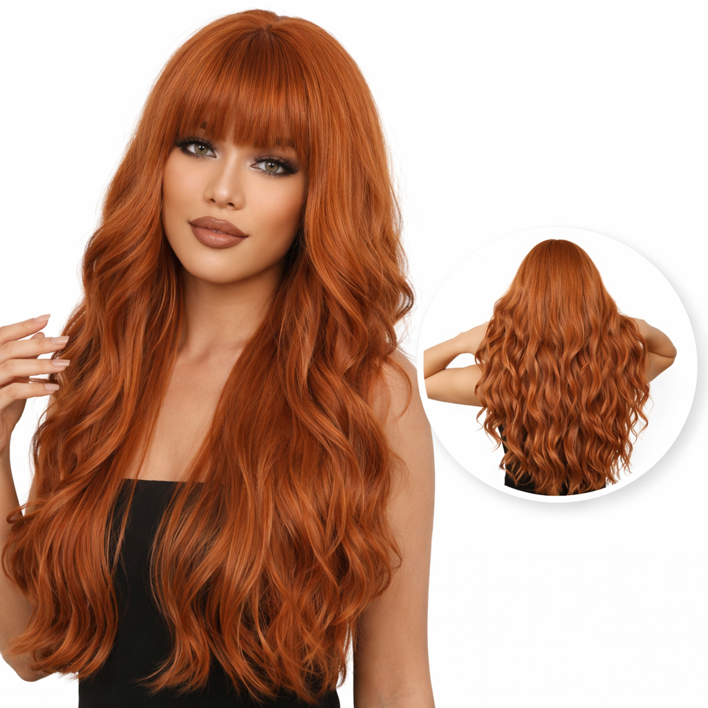 Koperen Pruik met Pony Lang Haar