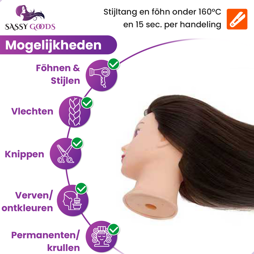 Oefenhoofd 80% Echt Haar Donkerbruin – Sassy Goods
